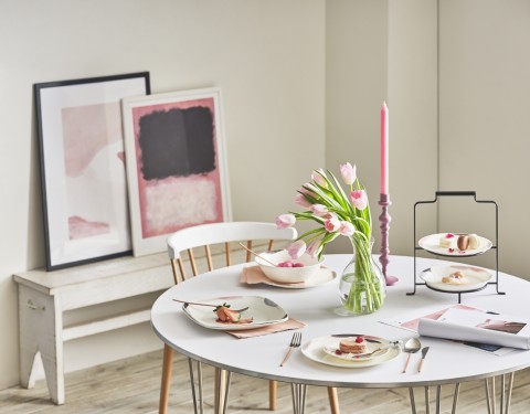 ‘시크 브러시’는 화이트 컬러에 골드 컬러와 붓으로 그려낸 페인팅의 감성적인 터치를 담아내 화사하게 피어나는 봄의 무드를 표현했다. 단아하면서 고급스러운 색상과 세련된 붓 터치가 조화를 이루며 싱그러운 봄의 기운을 테이블 위에서 만끽할 수 있다.