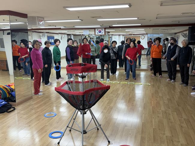 `실버놀샘터` 프로그램 참여 어르신들이 고리 던지기 등 활동에 참여하고 있다.구로구는 2026년 상반기 어르신 맞춤형 신체활동 프로그램을 운영한다고 5일 밝혔다. 고령 및 노인성 질환 등으로 보행이 어려운 어르신을 대상으로 한 좌식 신체활동 프로그램을 새로 도입한다.